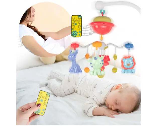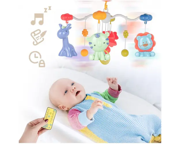 Un carusel mobil pentru patutul copiilor,nbsp cu animalute colorate,nbsp este un cadou grozav pentru cei mici .nbspUn carusel muzical, o cutie muzical pentru un ptu, controlat de o telecomand.Acesta e Produsul cu denumirea Carusel muzical pentru patut cu proiector si telecomanda face parte din brandul Playgro, se afla in categoria Costume carnaval copii si subcategoria
