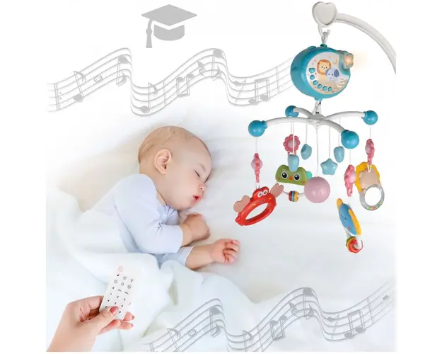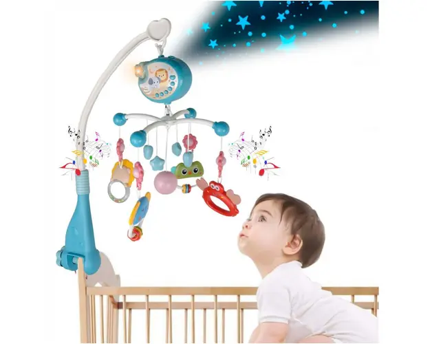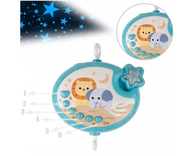 Carusel muzical pentru patut cu proiector si telecomanda Blue