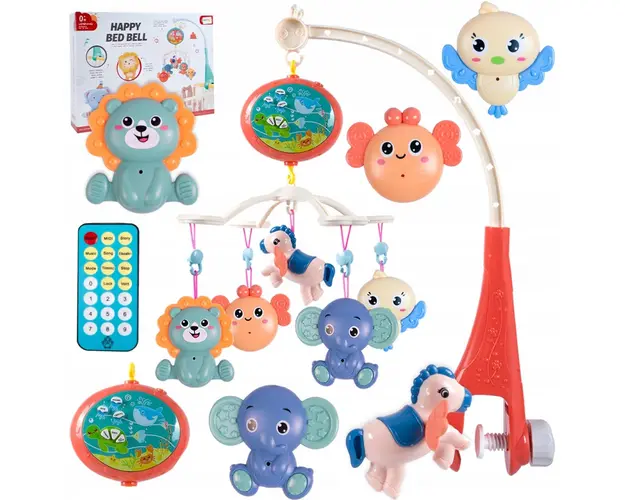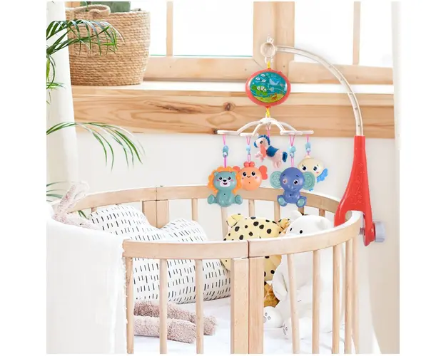 Caruselul colorat poate fi montat pe cadrul patutului. Datorita jucariilor suspendate ce se rotesc, somnul copilului va fi mai linistit.nbspJucariile sunt si detasabile.nbspEle pot fi date copilului d Produsul cu denumirea Carusel muzical pentru patut cu telecomanda si proiector Pegasus face parte din brandul Playgro, se afla in categoria Costume carnaval copii si subcategoria