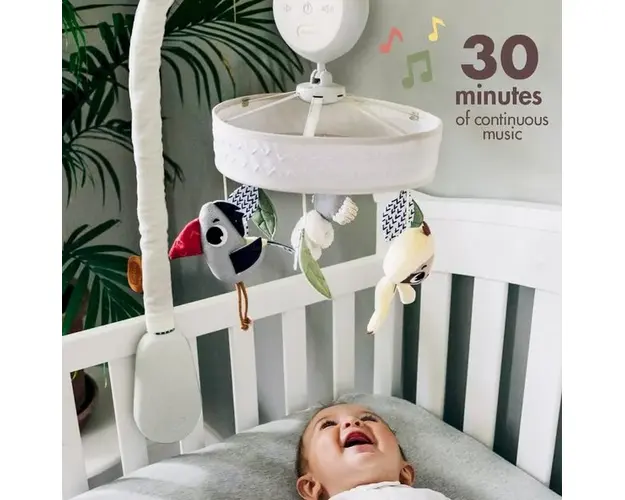 Caruselul muzical Luxe creeaza un mediu linistitor cu culori pamantii si materiale naturale. Proiectat cu broderie cu aspect vintage si personaje elegante, mobilul este perfect pentru parintii iubitor Produsul cu denumirea Carusel muzical Tiny Love Luxe Boho Chic face parte din brandul Tiny love, se afla in categoria Costume carnaval copii si subcategoria
