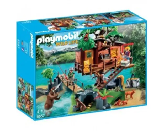 Exploreaza viata in aer liber cu Casa din copac. Situata in inima padurii, aceasta casa este inconjurata de tot felul de animale salbatice. Priveste cum o ursoaica prinde peste pentru puii ei, in timp ce o familie de vulpi se joaca in apropiere. Aveti grija la pod, insa. Este subred si, daca nu sunteti atenti, veti cadea! Un vultur plesuv si o bufnita si-au facut casa in ramurile de deasupra Casei din copac, oferindu-le copiilor o intalnire inedita, personala si de aproape cu natura. Aventurierii pot utiliza echipamentele din dotare pentru a afla mai multe despre prietenii lor animale si pentru a ajuta la protejarea mediului inconjurator. Folositi sistemul de scripeti pentru a ridica unele greutati pana la casa. La sfarsitul zilei pastrati vizitatorii nepoftiti afara din casa, tragand scarile sus. Setul include doua figurine, un copac cu casa cu platforma de iarba, ursi, gaste, vulpi, bufnita, vultur plesuv, pasare cu cuib, pesteri, peste, undita, sarpe, walkie talkie, calculator, cutii de aprovizionare si multe alte accesorii.Dimensiune cutie: 51.5x12.5x38.5cm Produsul cu denumirea Casa din copac face parte din brandul Playmobil, se afla in categoria Playmobil 1 si subcategoria 3