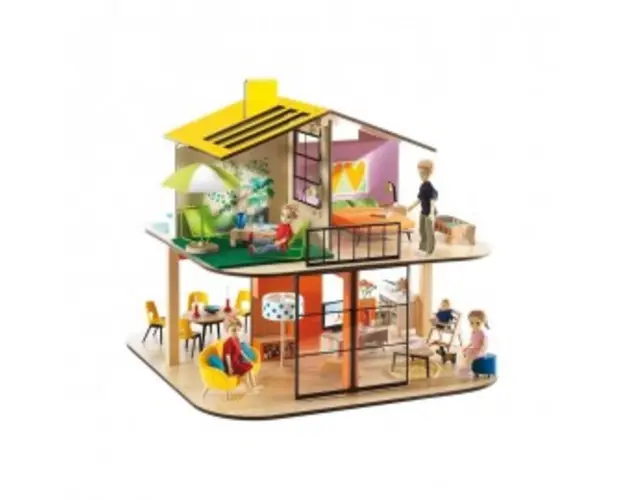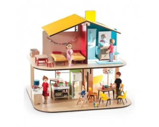Dimensiune: 37 cm (H) x 40 cm (l) x 40 cm (L) Confectionata din lemn si materiale non-toxice, cu vopsele non-toxice, conform reglementarilor EN71&ASTM. Producator: Djeco, Franta NU CONTINE MOBILIERUL SI FIGURINELE DIN IMAGINE. ACESTEA SE POT ACHIZITIONA SEPARAT. Compatibila cu toate seturile de mobilier Djeco (baie, terasa, bucatarie, sufragerie,dormitor, camera copil, figurine familie) Varsta recomandata: +4ani. Produsul cu denumirea Casa din lemn Djeco face parte din brandul Recaro, se afla in categoria Baloane de sapun si subcategoria