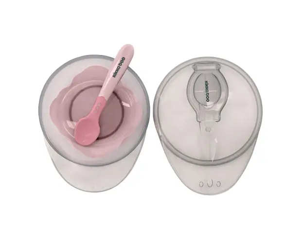 Castron cu ventuza si lingura KikkaBoo Pink