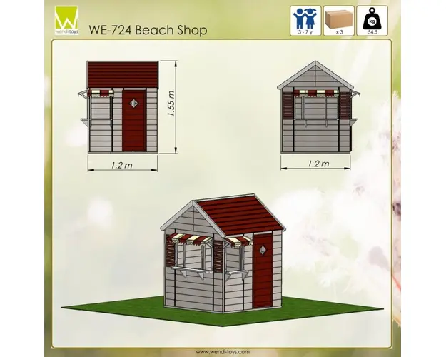 Inaltime totala 1,55m Lungime 1,2m Latime 1,2m Tip inchisa Alte caracteristici usa completa, cu ferestre si marchiza Culori rosu si natur Ambalaj 3 pachete cu dimensiunilenbsp80 x 120 x 9.3 (L x W x H Produsul cu denumirea Casuta de gradina Beach Shop M16 Wendi Toys face parte din brandul Tp toys, se afla in categoria Jucarii magnetice si subcategoria