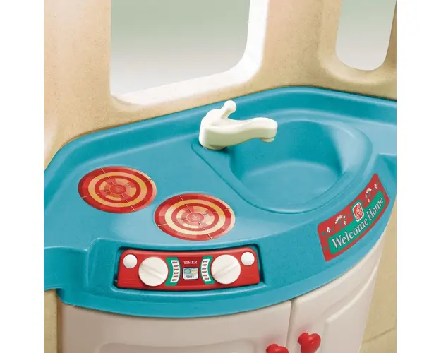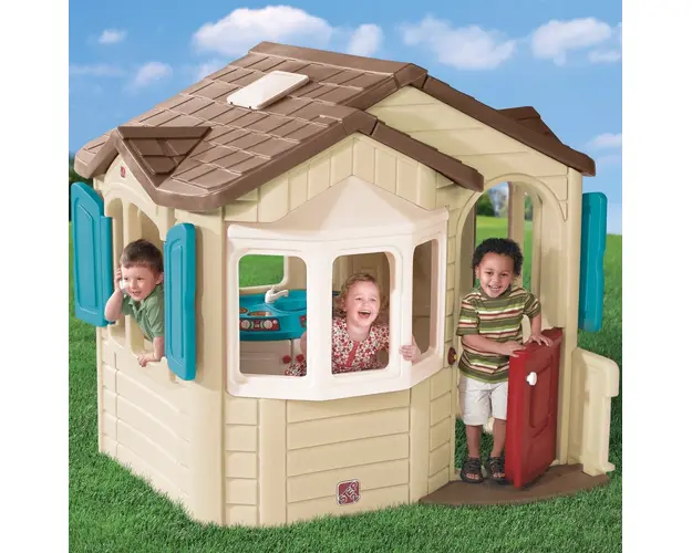 Dimensiuni 167.7 x 185.4 x 167.6 cm.Are usita, 2 ferestre largi, acoperis prin care poate intra lumina soarelui, bdquocovorasrdquo de bun venit si balustrada.In interior se afla o bucatarie cu chiuvet Produsul cu denumirea Casuta Naturally Playfull Welcome Home face parte din brandul Step2, se afla in categoria Jucarii magnetice si subcategoria