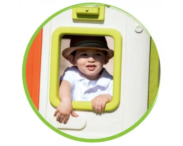 CaracteristiciCasuta Smoby Jura Lodge cu un design traditional este dotata cu doua geamuri si jaluzelePe peretele din spatele casutei de jucarie se afla o usa injumatatita cu un alt geam micut si cu o Produsul cu denumirea Casuta pentru copii Smoby Jura Logde face parte din brandul Mebby, se afla in categoria Jucarii magnetice si subcategoria
