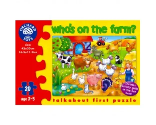 Cine e la ferma - Orchard Toys Dezvoltaţi dexteritatea, coordonarea mana-ochi şi inţelegerea lumii inconjuratoare ale copiilor cu acest puzzle educativ Orchard Toys. Gasiţi animalele domestice care traiesc la ferma, cu acest puzzle colorat si vesel. Varsta recomandata: 3-5 ani Produsul cu denumirea Cine e la ferma - Orchard Toys face parte din brandul Berg toys, se afla in categoria Jocuri interactive si subcategoria