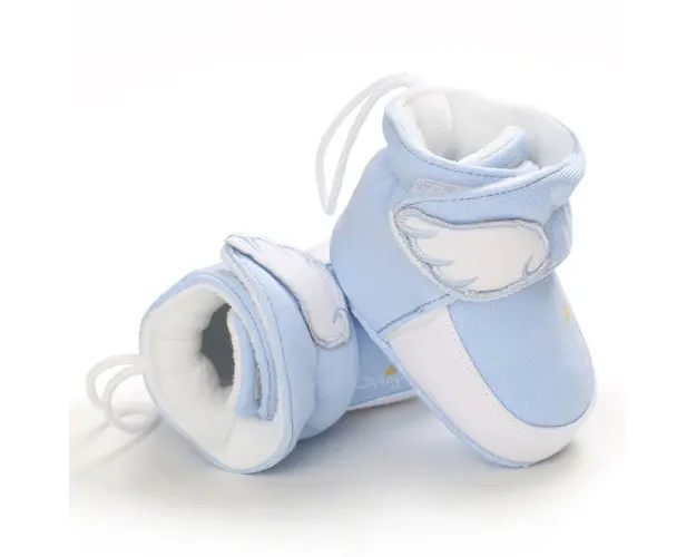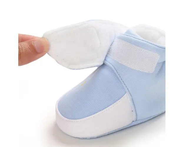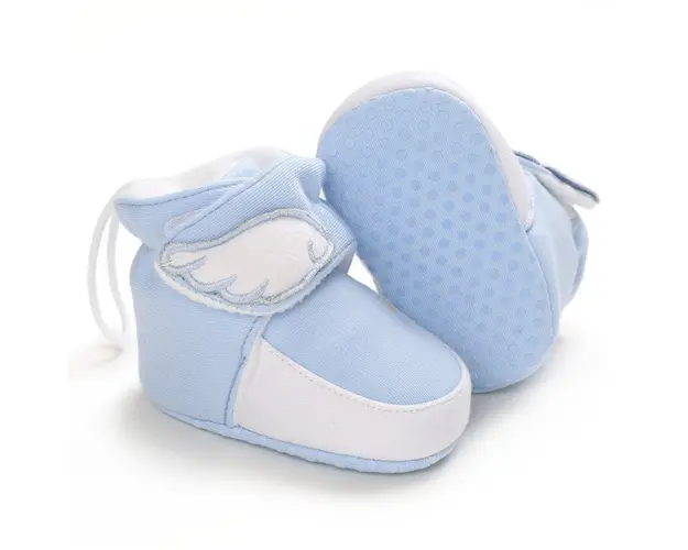 Marimi: 3-6 luni (lungime talpita la interior 10,5 cm, exterior 11 cm) 6-9 luni (lungime talpita la interior 11,5 cm, exterior 12 cm) 9-12 luni (lungime talpita la interior 12,5 cm, exterior 13 cm) Cizmulite pentru baietei, din material textil, dublate pe interior cu material plusat, cu o aripa alba aplicata. Se inchid cu bareta arici intr-o parte facilitand incaltarea cu usurinta. Culoare: bleu Talpa este din material textil cu inscriptie antiderapanta. Produsul cu denumirea Cizmulite bleu plusate pe interior face parte din brandul Sevibebe, se afla in categoria Barbie si subcategoria