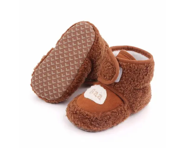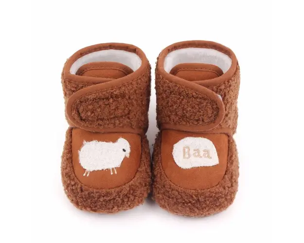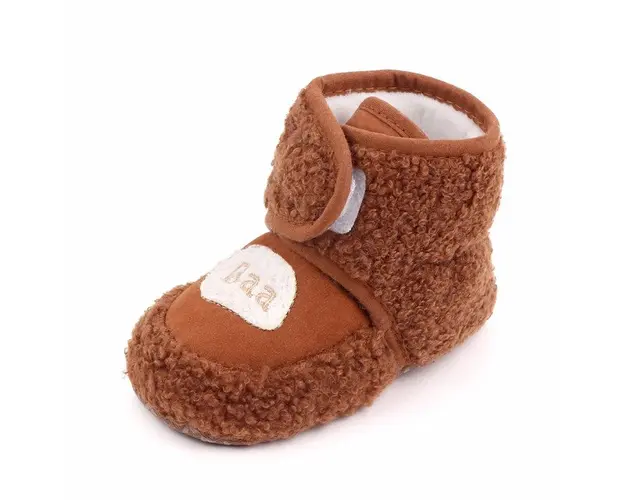 Marimi: 3-6 luni (lungime talpita la interior 10,5 cm, exterior 11 cm) 6-9 luni (lungime talpita la interior 11,5 cm, exterior 12 cm) 9-12 luni (lungime talpita la interior 12,5 cm, exterior 13 cm) Cizmulite pentru bebelusi, din material textil, cu blanita aplicata si cu o oita si inscriptie "Baa" in fata. Se inchid cu bareta cu arici facilitand incaltarea cu usurinta. Culoare: maro Talpa este din material textil cu inscriptie antiderapanta. Produsul cu denumirea Cizmulite maro cu blanita - Baa face parte din brandul Sevibebe, se afla in categoria Tetine si subcategoria