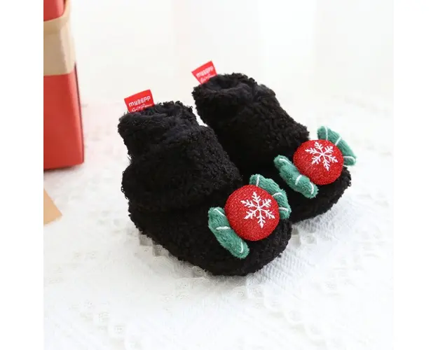 Marimi: 3-6 luni (lungime talpita la exterior 12 cm) 6-9 luni (lungime talpita la exterior 13 cm) 9-12 luni (lungime talpita la exterior 14 cm) Culoare: negru Model: cizmulite din blanita pentru bebelusi, cu o acadea rosie aplicata in fata. Se inchid cu bareta lata cu arici. Talpa: din material textil. Produsul cu denumirea Cizmulite negre din blanita - Acadea face parte din brandul Eurobaby, se afla in categoria Tetine si subcategoria