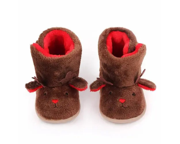 Marimi: 3-6 luni (lungime talpita la interior 10,5 cm, exterior 11 cm) 6-9 luni (lungime talpita la interior 11,5 cm, exterior 12 cm) 9-12 luni (lungime talpita la interior 12,5 cm, exterior 13 cm) Cizmulite pentru bebelusi, din material plusat, imblanite, in forma de ren dragalas. Se inchid cu arici intr-o parte facilitand incaltarea cu usurinta. Culoare: maro Talpa este din material textil cu inscriptie antiderapanta. Produsul cu denumirea Cizmulite pentru bebelusi - Renul maro face parte din brandul Sevibebe, se afla in categoria Tetine si subcategoria