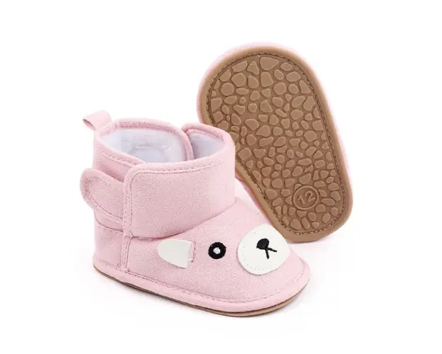 Marimi: 3-6 luni (lungime talpita la interior 10,5 cm, exterior 11 cm) 12 6-9 luni (lungime talpita la interior 11,5 cm, exterior 12 cm) 13 9-12 luni (lungime talpita la interior 12,5 cm, exterior 13 cm) 14 Cizmulite imblanite pentru fetite, din material tip piele intoarsa, in forma de ursulet. Se inchid cu arici in parti. Culoare: roz Talpa: din cauciuc moale si flexibil, ideala pentru primii pasi Produsul cu denumirea Cizmulite pentru fetite - Pink teddy face parte din brandul Superfinish, se afla in categoria Tetine si subcategoria
