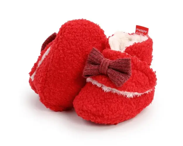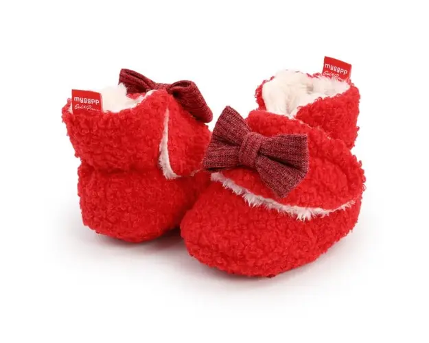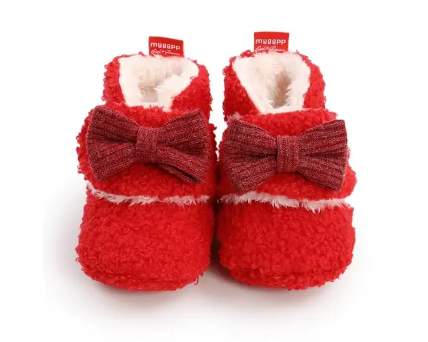 Marimi: 3-6 luni (lungime talpita la interior 10,5 cm, exterior 11 cm) 6-9 luni (lungime talpita la interior 11,5 cm, exterior 12 cm) 9-12 luni (lungime talpita la interior 12,5 cm, exterior 13 cm) Cizmulite imblanite pentru fetite, din material textil tip blanita plusata, se inchid cu bareta lata cu arici intr-o parte, pe care este aplicata o fundita visinie. Culoare: rosu Talpa este din material textil Produsul cu denumirea Cizmulite rosii cu fundita face parte din brandul Superfinish, se afla in categoria Tetine si subcategoria