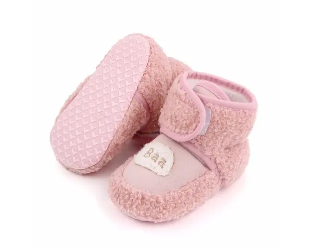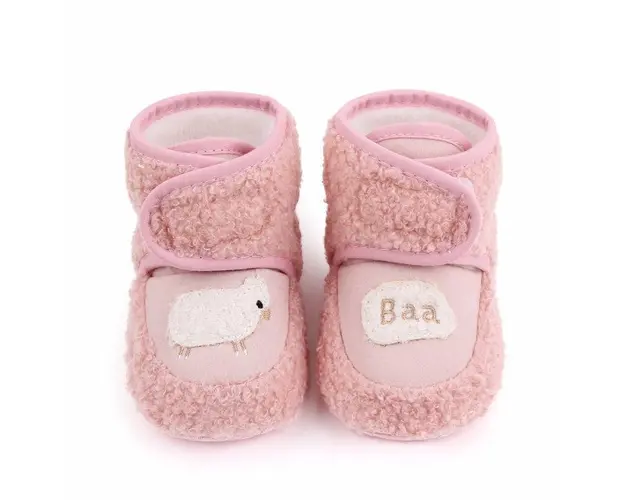 Marimi: 3-6 luni (lungime talpita la interior 10,5 cm, exterior 11 cm) 6-9 luni (lungime talpita la interior 11,5 cm, exterior 12 cm) 9-12 luni (lungime talpita la interior 12,5 cm, exterior 13 cm) Cizmulite pentru fetite, din material textil, cu blanita aplicata si cu o oita si inscriptie "Baa" in fata. Se inchid cu bareta cu arici facilitand incaltarea cu usurinta. Culoare: roz Talpa este din material textil cu inscriptie antiderapanta. Produsul cu denumirea Cizmulite roz cu blanita - Baa face parte din brandul Sevibebe, se afla in categoria Tetine si subcategoria