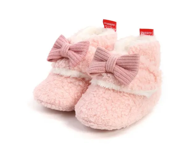 Marimi: 3-6 luni (lungime talpita la interior 10,5 cm, exterior 11 cm) 6-9 luni (lungime talpita la interior 11,5 cm, exterior 12 cm) 9-12 luni (lungime talpita la interior 12,5 cm, exterior 13 cm) Cizmulite imblanite pentru fetite, din material textil tip blanita plusata, se inchid cu bareta lata cu arici intr-o parte, pe care este aplicata o fundita. Culoare: roz Talpa este din material textil Produsul cu denumirea Cizmulite roz cu fundita pentru fetite face parte din brandul Superfinish, se afla in categoria Tetine si subcategoria