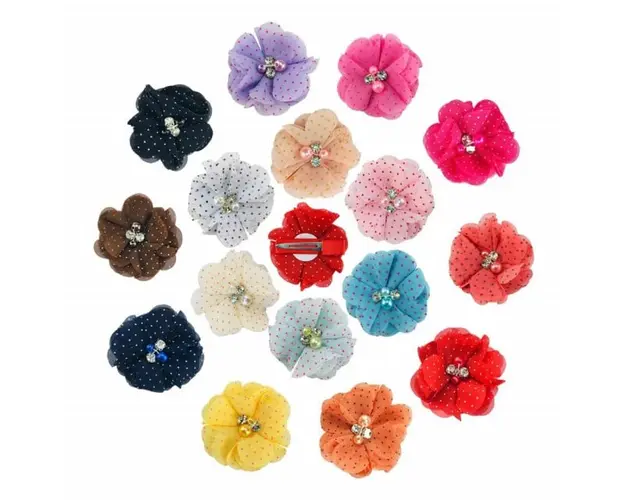 Clama pentru fetite, in forma de floricica, imprimata cu bulinute, prevazuta cu strasuri si perlute in mijloc. Ofera un plus de eleganta oricarei tinute purtate de micuta. Modelul este disponibil in diverse culori. Pretul afisat este pentru o singura bucata. Produsul cu denumirea Clama pentru fetite - Floricica cu bulinute face parte din brandul Eurobaby, se afla in categoria Prepararea hranei si subcategoria