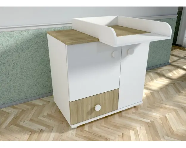 Comoda cu blat de infasat Lucky alb-natur A563