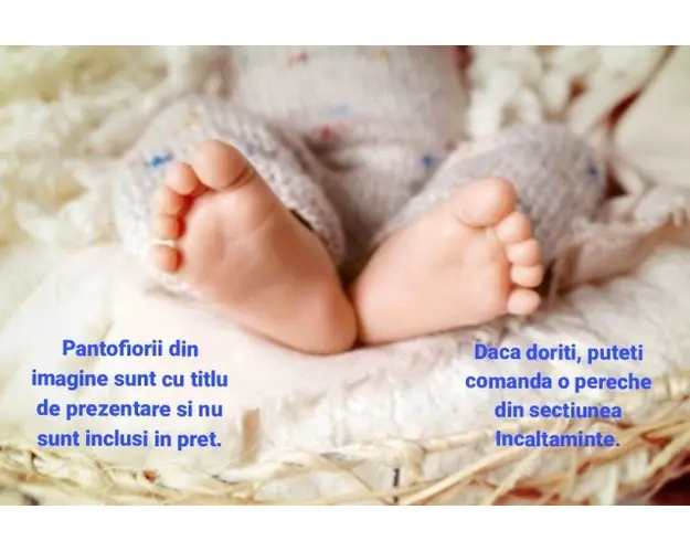 Marimi: 0-3, 3-6, 6-9, 9-12 luni Material: 95% Bumbac, 5% spandex Compleu pentru fetite format din: - body alb cu maneca lunga, imprimat cu un ponei, se inchide cu capse intre picioruse; - pantaloni roz, imprimati cu ponei; - bentita asortata; - caciulita tip piticot asortata. INTRETINERE: Se spala la masina la 40 impreuna cu alte culori similare si se calca pe dos. Nu se aplica inalbitori si nu se usuca la masina. Culorile produselor pot varia in functie de monitorul calculatorului si calibrarea acestuia. Produsul cu denumirea Compleu pentru fetite - Poney face parte din brandul , se afla in categoria Prepararea hranei si subcategoria