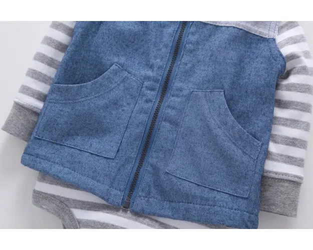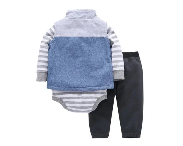 Marimi: 6-9, 9-12, 12-18, 18-24 luni Material: 95% Bumbac, 5% spandex Compleu pentru baietei, format din: - body cu maneca lunga, alb cu dungi gri, se inchide cu capse intre picioruse; - pantaloni negri, prevazuti cu elastic in talie; - vesta captusita, din material tip denim, se inchide cu fermoar pe mijloc. INTRETINERE: Se spala la masina la 40 impreuna cu alte culori similare s i se calca pe dos. Nu se aplica inalbitori si nu se usuca la masina. Culorile produselor pot varia in functie de monitorul calculatorului si calibrarea acestuia. Produsul cu denumirea Compleu cu vestuta pentru baietei face parte din brandul Eurobaby, se afla in categoria Tampoane de san si subcategoria