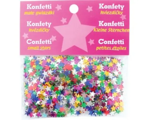 Confetti stralucitoare in diferite forme. • forma de stelute, mici • diverse culori • 6 g • dimensiuni: 0,6 x 0,6 cm Produsul cu denumirea Confetti stralucitoare stelute mici face parte din brandul Moje bambino, se afla in categoria Accesorii halloween si subcategoria