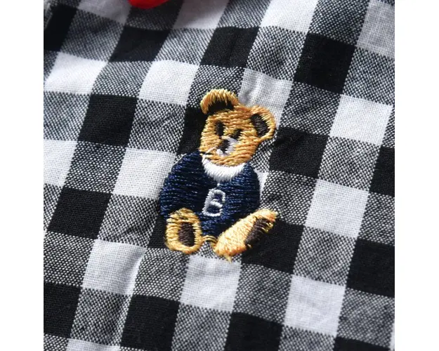 Marimi: 9-12 (80), 12-18 (90) luni Material: 95 % Bumbac, 5% spandex Costum pentru baietei format din piese: - camasa cu maneca lunga, in carouri negre si albe, se inchide cu nasturei in fata; - blugi prevazuti cu elastic in talie; - papion albastru - bretele. Papionul difera fata de poza de prezentare. Este potrivit si pentru ocaziile deosebite din viata micutului. INTRETINERE: Se spala la masina la 40 impreuna cu alte culori similare si se calca pe dos. Nu se aplica inalbitori si nu se usuca la masina. Culorile produselor pot varia in functie de monitorul calculatorului si calibrarea acestuia. Produsul cu denumirea Costum cu blugi si camasuta neagra in carouri face parte din brandul Eurobaby, se afla in categoria Tampoane de san si subcategoria
