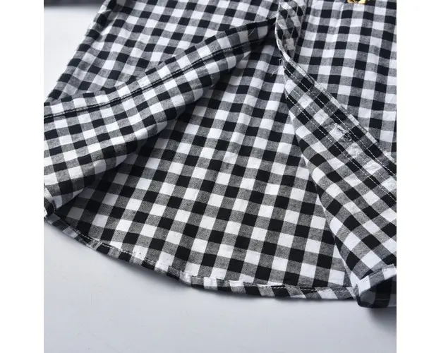 Costum cu blugi si camasuta neagra in carouri