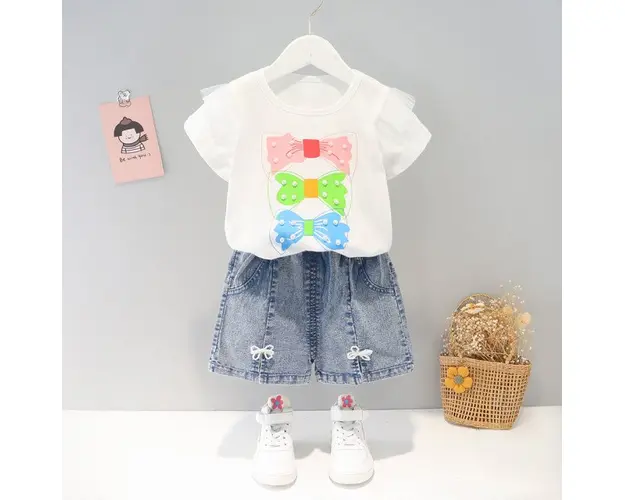 Costumas cu bluzita alba si pantalonasi din blugi - Fundite