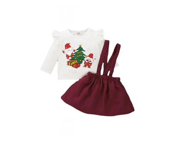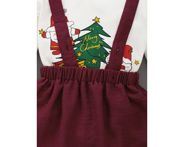 Marimi: 9-12, 12-18, 18-24, 24 luni Material: 95% Bumbac, 5% spandex Costumas din 2 piese format din: - bluzita alba cu maneca lunga, imprimata cu bradut si 2 Mosi Craciuni haiosi; - sarafan visiniu. Produsul cu denumirea Costumas cu bluzita alba si sarafan visiniu face parte din brandul , se afla in categoria Cadite si articole pentru baie si subcategoria