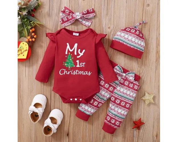 Costumas din 4 piese pentru bebelusi - First Chrismas