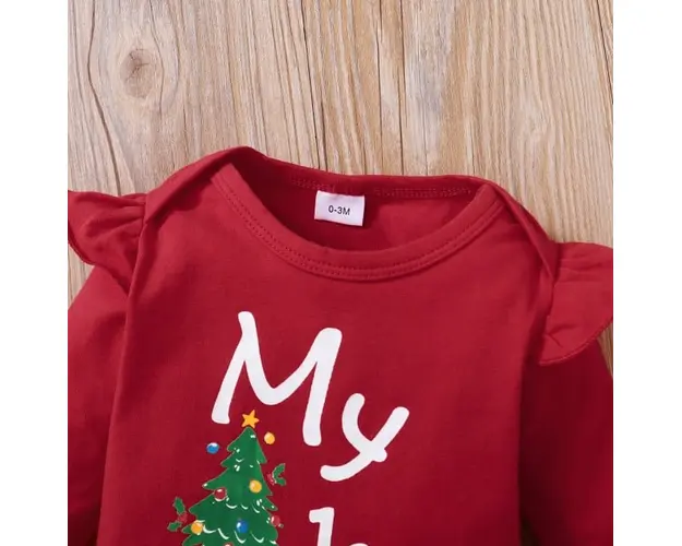 Marimi: 0-3, 3-6, 6-9, 9-12, 12-18 luni Material: 95% Bumbac, 5% spandex Costumas din 4 piese format din: - body rosu cu maneca lunga, cu inscriptie "My 1'st Christmas", se inchide cu capse intre picioruse; - pantalonasi cu imprimeu specific sarbatorilor de iarna, prevazuti cu elastic in talie; - caciulita tip piticot asoratata cu pantalonasii; - bentita asortata. Pantofiorii din imagine sunt cu titlu de prezentare si nu sunt inclusi in pret. Produsul cu denumirea Costumas din 4 piese pentru bebelusi - First Chrismas face parte din brandul Eurobaby, se afla in categoria Cadite si articole pentru baie si subcategoria