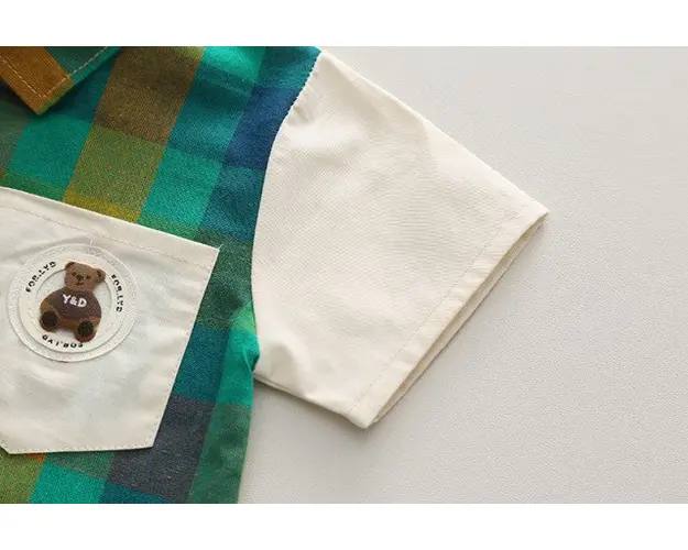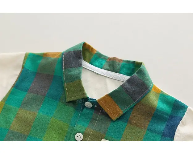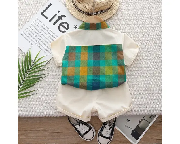 Costumas pentru baietei cu camasuta verde in carouri