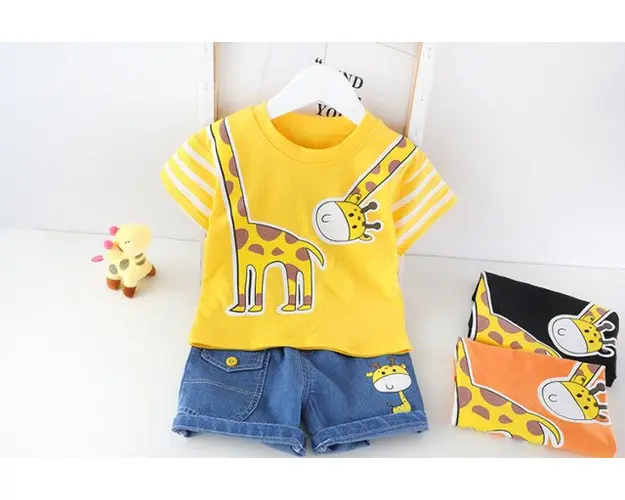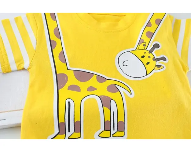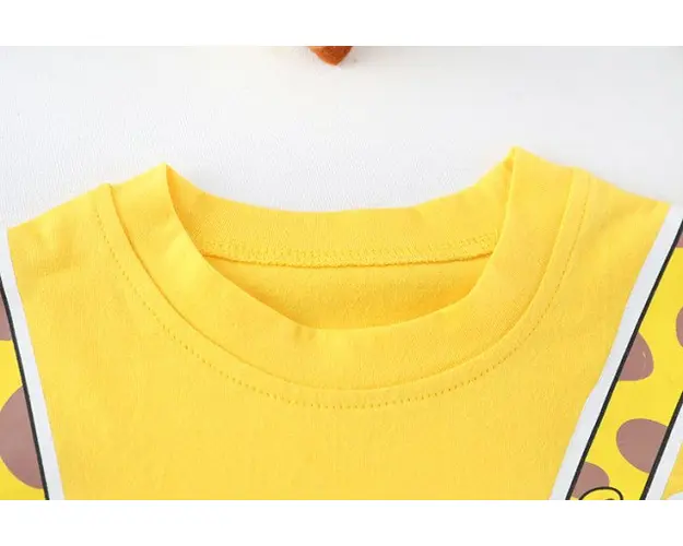 Marimi: 6-9, 9-12, 12-18 luni, 2, 3 ani Material: 95% bumbac, 5% polyester Set pentru baietei, format din: - tricou galben, imprimat cu o girafa; - pantalonasi trei sferturi din blugi, prevazuti cu elastic in talie, cu o girafa imprimata. Pantofiorii din imagine sunt cu titlu de prezentare si nu sunt inclusi in pret. Produsul cu denumirea Costumas pentru baietei - Girafa face parte din brandul Eurobaby, se afla in categoria Prepararea hranei si subcategoria