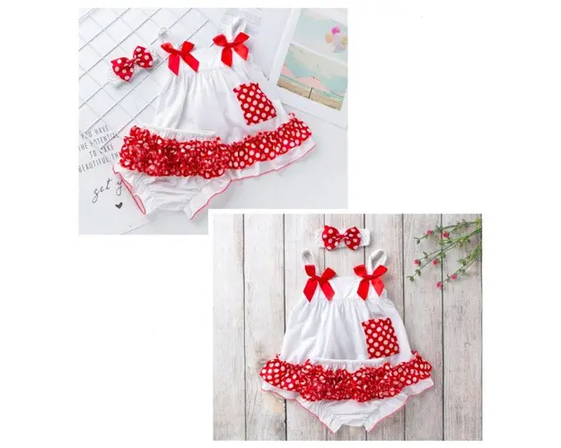 Marimi: 3-6 (59), 6-9 (66), 9-12 (73), 12-18 luni (80) Material: 97% bumbac, 3% spandex Set pentru fetite format din: - bluzita alba, cu bretelute, cu volanas si buzunar rosu cu bulinute albe, cu 2 fundite din saten aplicate. La spate are croiala mai scurta. - chilotei bufanti cu volanase; - bentita alba din elastec moale, cu o fundita rosie din saten cu buline albe. Produsul cu denumirea Costumas pentru fetite alb cu volanase rosii face parte din brandul , se afla in categoria Prepararea hranei si subcategoria