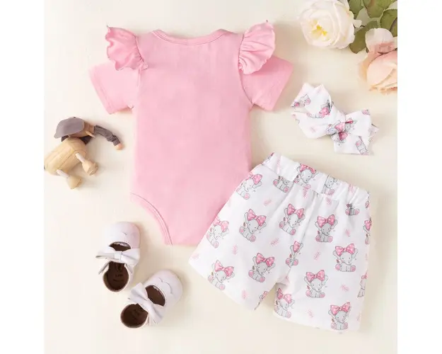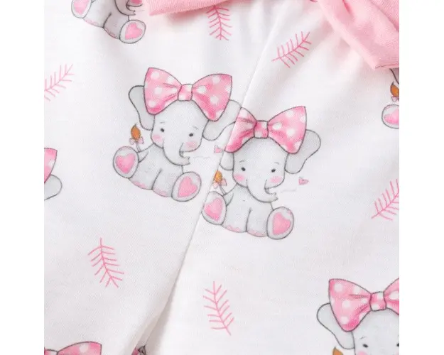 Marimi: 0-3 (70), 3-6 (80), 6-9 (90), 9-12 (100) luni Material: body: 95% bumbac, 5% spandex; pantaloni: 35% bumbac, 65% spandex Set pentru fetite, format din: - body roz cu manecute scurte, imprimat pe piept cu un elefantel dragalas, se inchide cu capse intre picioruse; - pantalonasi scurti, albi, imprimati cu elefantei, prevazuti cu elastic si o fundita in talie; - bentita asortata. Pantofiorii din imagine sunt cu titlu de prezentare si nu sunt inclusi in pret. Produsul cu denumirea Costumas pentru fetite - Baby elephant face parte din brandul , se afla in categoria Prepararea hranei si subcategoria