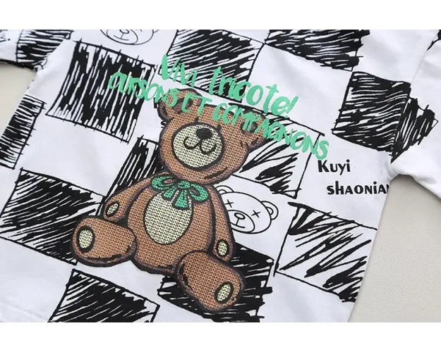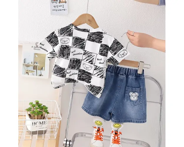 Costumas cu tricou alb si blugi pentru baietei - Bear