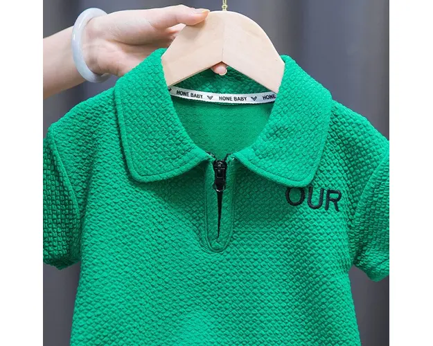 Marimi: 6-9 (80), 9-12 (90), 12-18 (100) luni, 2 (110), 3 (120) ani Material: 100% poliester Set verde pentru copii, format din: - tricou cu guleras si fermoar prevazut in fata; - pantalonasi trei sferturi, prevazuti cu buzunare si cu elastic in talie. Produsul cu denumirea Costumas verde pentru copii - OUR face parte din brandul Eurobaby, se afla in categoria Prepararea hranei si subcategoria