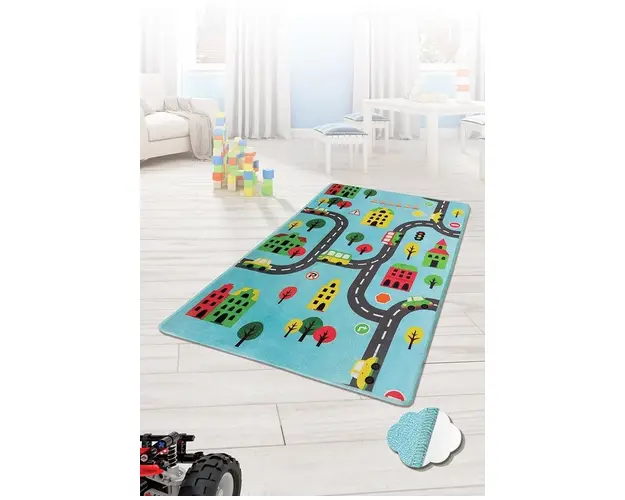 Covor antiderapant pentru copii Road Blue 100x150 cm