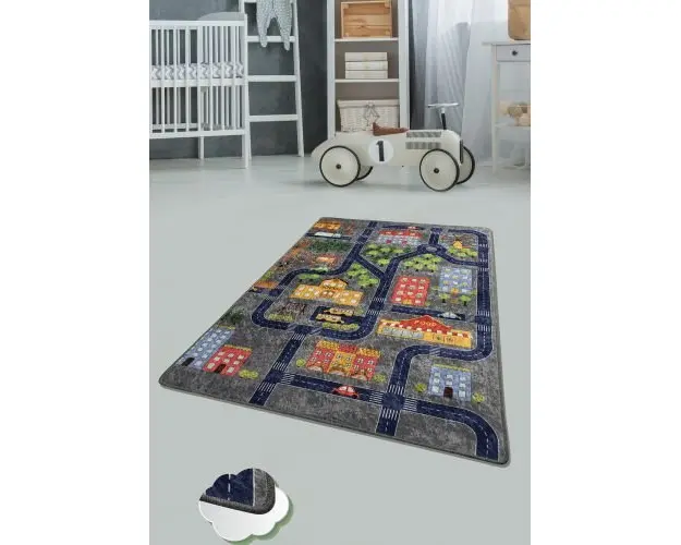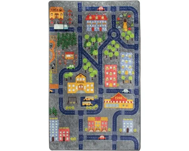 Covor antiderapant pentru copii Small Town gri 150x200 cm
