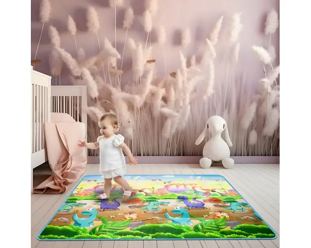 Covor din spuma pliabil cu doua fete 200x180cm Happy Dinosaurs
