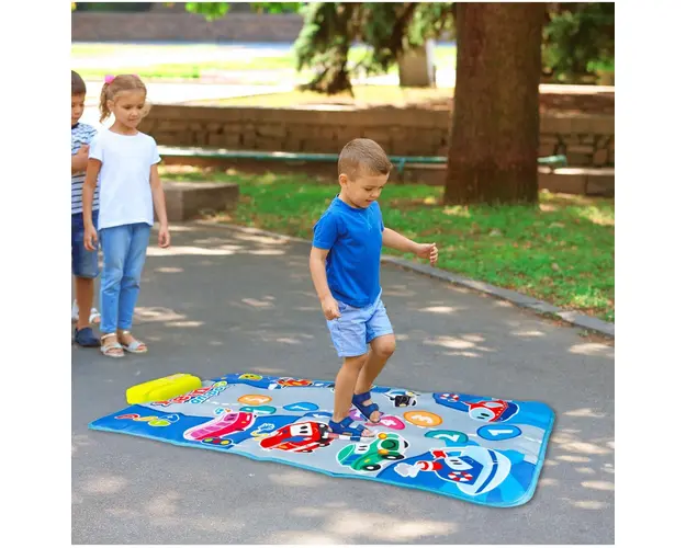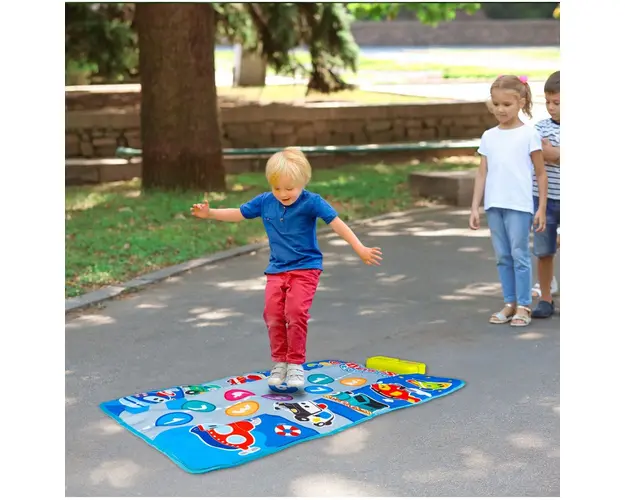 Covorasul Muzical Interactiv ii poarta pe cei mici intr-o calatorie captivanta prin universul transportului, oferind o experienta interactiva si educativa plina de incantare.Cu un design viu colorat s Produsul cu denumirea Covoras interactiv muzical Masini 80x50cm face parte din brandul Playgro, se afla in categoria Costume carnaval copii si subcategoria