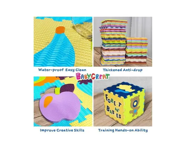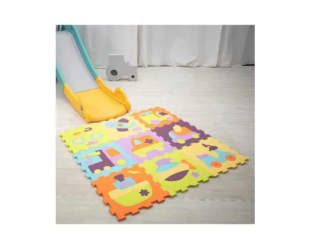 Covor de joaca pentru copii ndash tip puzzle.Covorul este o jucarie multifunctionala si practica usor de asamblat. Se compune din 9 piese de aceeasi marime, fiecare avacircnd desene diferite pe tema l Produsul cu denumirea Covoras Puzzle Animalute Vesele 92x92 cm face parte din brandul Beaba, se afla in categoria Costume carnaval copii si subcategoria