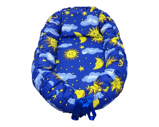 Cuib bebe si salteluta de joaca Croitoria Noastra cu perna slim Soarele si luna