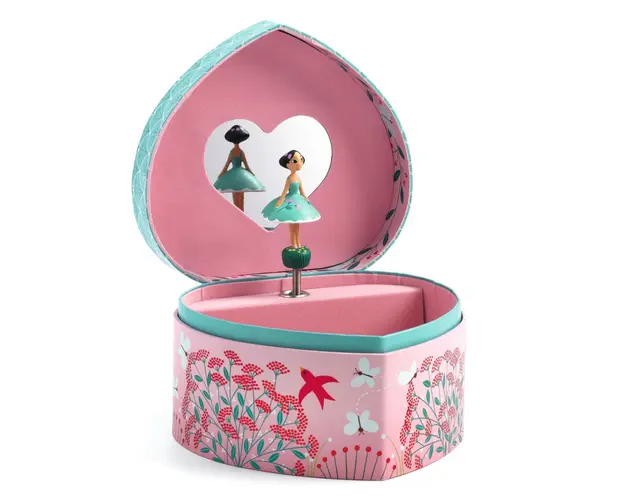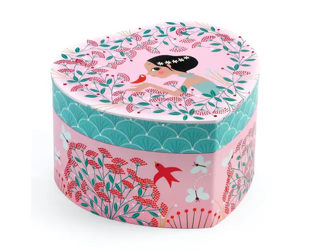 Cutie muzicala Melodie de primavara este un cadou perfect pentru micile printese! Aceasta cutie muzicala in forma de inima nu doar ca pastreaza bijuterii si lucruri secrete, dar aduce si un strop de magie in camera copilului. Intoarce cheita, deschide cutia si lasa-te surprins de dansatoarea delicat sculptata care se roteste, reflectata intr-o oglinda in forma de inimioara, pe melodia „Invitatia la dans” a lui Carl Maria Von Weber. Melodia dureaza aproximativ 2 minute si 30 de secunde, oferind momente de bucurie si visare. Captuseala moale de catifea din interiorul cutiei adauga un plus de eleganta. Dimensiunile cutiei muzicale sunt de 14,7 x 14,2 x 8,2 cm, iar varsta recomandata este de +4 ani. Confectionata din materiale de calitate, precum carton, textil si metal, aceasta cutie muzicala este un articol decorativ, nu o jucarie, asa ca este important sa nu fie lasata la indemana copiilor sub 3 ani. Producator: Djeco, Franta. Produsul cu denumirea Cutie muzicala Melodie de primavara, Djeco face parte din brandul Recaro, se afla in categoria Authentic models si subcategoria Lichidare stoc
