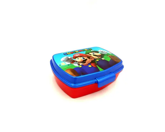 Cutie din plastic cu capac care se inchide prin capsare, imprimata cu super cunoscutul personaj din jocul Wii Super Mario BrosMaterial rezistentCapac decoratFara BPALicenta oficialaDimensiuni 5.6x14x1 Produsul cu denumirea Cutie plastic pranz Super Mario Bros face parte din brandul Stamco, se afla in categoria Animale si subcategoria