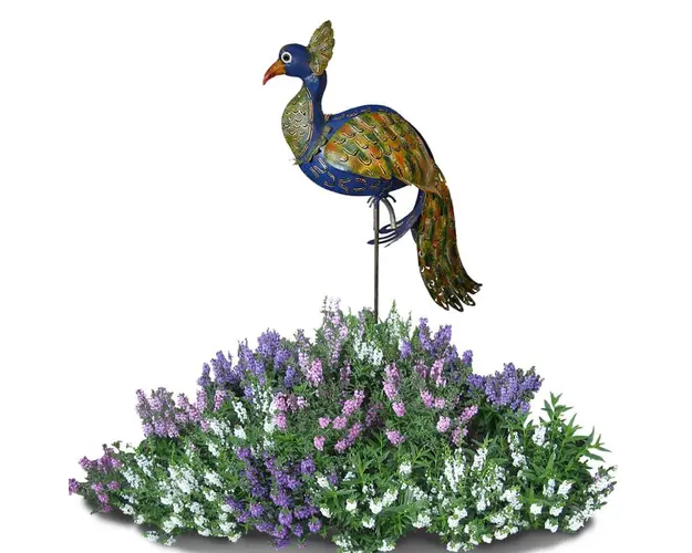 Alunga monotonia din gradina ta adaugand aceasta frumoasa figurina metalica infatisand un Paun. Realizat integral din metal Paunul atrage privirile imediat datorita culorilor vii specifice aceastei pa Produsul cu denumirea Decoratiune metalica gradina Paun cu tija 134 cm face parte din brandul Deseda, se afla in categoria Jucarii magnetice si subcategoria