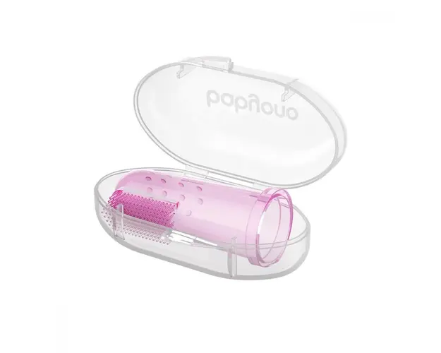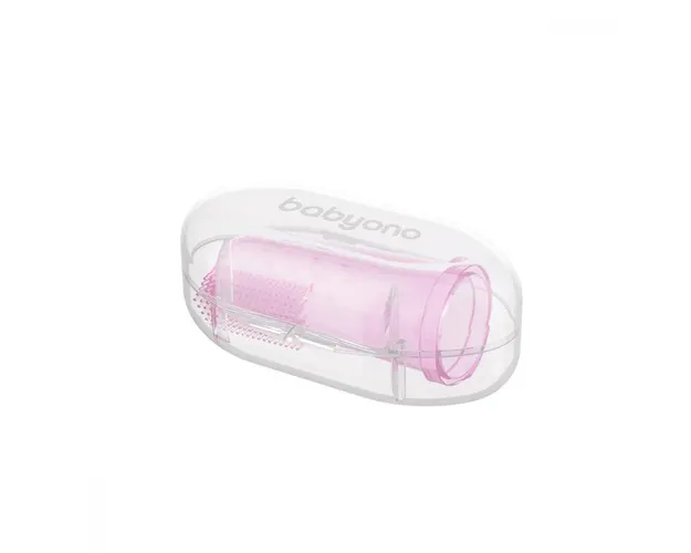 Degetar din silicon Baby Ono roz pentru masarea gingiilor