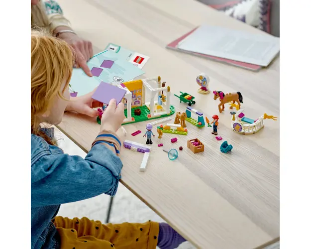 Copiii de 4 ani si mai mari care adora sa aiba grija de cai si de alte animale pot crea multe povesti fanteziste cu setul de constructie LEGO® Friends Dresaj pentru cai 41746. Acest set ii ajuta pe copii sa invete sa construiasca si include minipapusele Aliya si Mia, plus 2 personaje cai si accesorii pentru joaca creativa. Copiii pot explora relatia dintre Aliya si mama prietenei ei, Mia, cele doua apropiindu-se datorita pasiunii impartasite pentru cai.Inspira noii constructoriSeturile LEGO 4+ sunt concepute pentru a oferi copiilor o experienta de constructie rapida si distractiva. Includ o caramida practica pentru incepatori, o baza solida pe care copiii pot crea scena. Foloseste aplicatia LEGO Builder ca sa te ghideze pe tine si pe copilul tau in aventura intuitiva de constructie, pe parcursul careia poti apropia si roti modelele in 3D, salva seturi si monitoriza propriul progres.Bun-venit la generatia urmatoare din Orasul HeartlakeCopiii isi pot face prieteni, descoperi locatii interesante si interpreta aventuri din viata reala in universul LEGO Friends. Produsul cu denumirea Dresaj de cai face parte din brandul Coletto, se afla in categoria Jucarii outdoor si subcategoria Produse noi