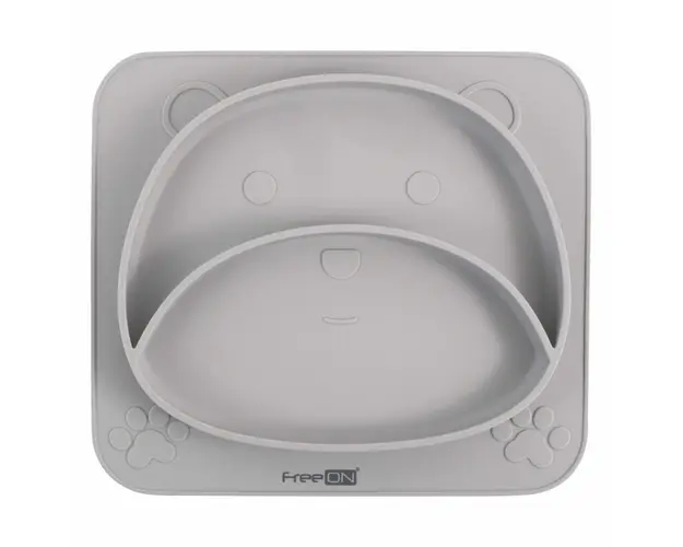 Farfurie compartimentata FreeON din silicon Teddy Bear Grey