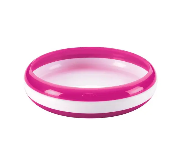 Mancarea aluneca usor pe tacamuri, fie ele furculite sau linguri, (sau cel puin ramane pe suprafata platoului) cu ajutorul inelului inaltat si detasabil al acestui platou cu baza anti-derapanta.Culoar Produsul cu denumirea Farfurie copii cu inel pentru antrenament roz face parte din brandul Oxo tot, se afla in categoria Animale si subcategoria