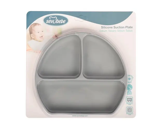 Farfurie din silicon SeviBebe cu ventuza gri